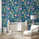 青いChinoiserie孔雀フローラの皮とスティック壁紙