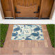 青とクリームのウミガメのモノグラム ドアマット