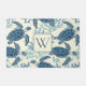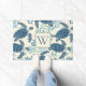 青とクリモノグラムのームの陰にインスパイア海の亀とサンゴの沿岸パターンを備えた美しいドアマット。好きなイニシャルでモノグラムをパーソナライズ。