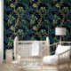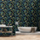 ヴィンテージインスパイアブルーとグリーンの花の模様を持つ深い壁紙。最高のインテリアのソリューション。