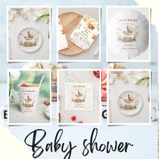 この招待はコウノトリ運のベビーバンドルを特徴とし、ベビーシャワー招待状の共通のモチーフとなっている。全体のデザインは、パステルカラーパレットとお洒落スタイルを使図解入りの、写真付きの用する。