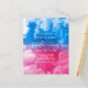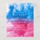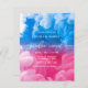 青とピンクの煙をテーマにしたベビージェンダーがパーティの招待状を明らかにする。白い背景の上に、白いエレガントタイポグラフィ文字の周りにピンクと青の煙の爆弾。