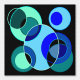 カラフルと幾何学的抽象芸術パターン、黒い背景の緑と青の交差する円のさまざまな色合い
