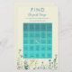 ベビーシャワービンゴゲームで楽しい時間を過ごそう!この活魅力的動は、あなたの赤ちゃんシャワーにおもしろいと興奮のtouchを追加するのに最適である。美しいトワイライトブルーと緑のワイルドフラワーと、このゲームは必ずあなたのお祝いに喜びと笑いを持って来る。・お客与え様は「お客さんを探す」シートで、中にことわざの入ったマスが何枚も入っている。「手に入れて離れ」「ママと一緒に学校へ行った」など。これで客が立ち上がり混じって来る。 – 狙いは、勝つために名前のフルラインを取得することである。 – 最初に行、列、または対角線を完了し、「ビンゴ!」と叫んだゲストは甘い賞を獲得!