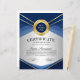 学校、企業、教会などで使える、プロフェッショナルな青と金の縦型感謝証明書のテンプレート。グレーのグラデーションバックと、葉の輪郭が入った青と輝く金のメダルが特徴です。お好みに合わせてカスタマイズできます。