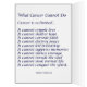これは絵画、青い背景の上に様々な色の金ゴールドの中で「癌ができないこと」の文字を持っている。その絵画のはア描写クリルだった。この売却による利益は、非営利501(c)3ドンナベラスエンジェルを支援する。カードの内側パネルには「がんができないこと」離れの文字が印刷されている。