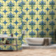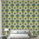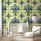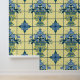 青と黄色のデルフトフローラ配置タイル 壁紙
