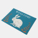青にエレガント白うさぎオレンジの植物を座る ドアマット