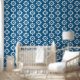 青い背景に白い様式花のパターンあなたのニーズに合わせてもし別のシェードを好む背景色を変更する