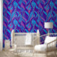 青はっきりした紫の植物葉柄壁紙は青とピンクと紫のはっきりしたのパター離れンを備える。ホームデッキ、バスルーム、壁のアクセントとトリートメント、オフィスの装飾とパーティーの装飾に最適。Evco Studio www.zazzle.com/store/evcostudioによって作成