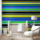 青はっきりした色、ライム、黄色の壁ストライプの紙 壁紙