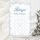 ビンゴおもしろいは?私たちよくはしゃぐのパウダーブルーバタフライフローラスケッチ赤ちゃんシャワービンゴゲームカードは勝者である!こ想像のカードは、ゲームを始めたいと望む運いたずらな蝶によってあなたのお祝いに飛び込む。繊細なパウダーブルーの花模様と風通しの良いスケッチの背景を備え、あなたの赤ちゃんお洒落のシャワー活動にエレガンスのtouchを追加する。ゲストはギフトの推測で自分の正方形を満たすことができ、最初に「ビンゴ!」と叫ぶことが賞金を獲得する!それは簡単であり、誰もが楽しむことができる喜ばしい方法である。