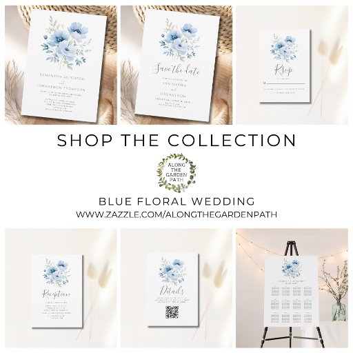 ブルーエレガントフローラ水彩結婚式は日付カードを保存する。簡単の変更文字。