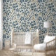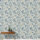 青エレガント水色花柄 壁紙
