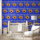 青エレガント灰色の黄色い花四角タイル 壁紙