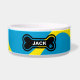 青カラフルと黄色のパーソナライズされたペットボウルと骨とカスタマイズ、ペット名付き、ご注文時に種類を変更する