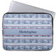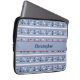 名前またはイニシャルを使用し航海のて、この青と白のいかりラップトップスリーブをカスタマイズする。