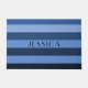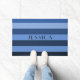 青モダンいストライプ名前をカスタムする ドアマット