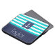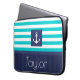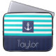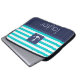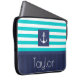ラップトップスリーブと航海のターコイズ&ネイビー青パタストライプのーンとカスタマイズ可能な文字。