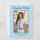 2022モダン年のクラスまたは任意の年のための可愛い、シックでソフトな青、両面の卒業写真の発表フラットカード。自分の写真を前面に表示し、自分の名前、学名、卒業年をパーソナライズする。垂直方向に書式設定。このカードの裏には2枚の写真と任意の詳細がある。高校の成績、将来の計画、卒業記念パーティーの情報など、共有したい項目を含む。背景色もカスタマイズ可能。