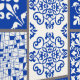 青地中海の白のアズレジョマジョリカタイル 壁紙