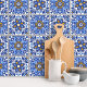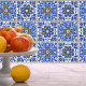 タイル模様フローラデザイン青白地中海の鶴上瓦装飾抽象芸術フルーアデリスポルトガル語スペインのトルコ語幾何モダンクラシック伝統的剥き取りアクセント壁紙自己粘着キッチンバックスプラッシュリムーバブル仮壁紙