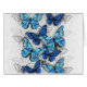 灰色の質感の背景にリアルな、青と白のモルフォ蝶の垂直構成。モルフォ青蝶。