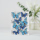 灰色の質感の背景にリアルな、青と白のモルフォ蝶の垂直構成。モルフォ青蝶。