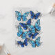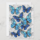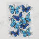 灰色の質感の背景にリアルな、青と白のモルフォ蝶の垂直構成。モルフォ青蝶。