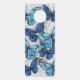 灰色の質感の背景にリアルな、青と白のモルフォ蝶の垂直構成。モルフォ青蝶。