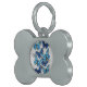 灰色の質感の背景にリアルな、青と白のモルフォ蝶の垂直構成。モルフォ青蝶。