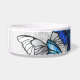 灰色の質感の背景にリアルな、青と白のモルフォ蝶の垂直構成。モルフォ青蝶。