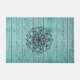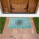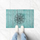 風化した青い木の背景を持つ黒い線状のマンダラグラフィックは、これはほとんどの人のためのウェルカムマットを作る