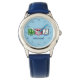 平和のサイン、ハート、そしてスペクトル上の人々のための自閉症の意識のための自閉症リボン。可愛い子ども時計パーソナライズされたと名前。