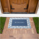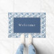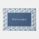 青と白のダリアのプリントは縁ど、薄い灰色の青の消音した色を取り囲む厚い厚さの無地の型枠を縁どする。歓迎は中央に置かれ、ライトグレーの文字で行われる。このカスタマイズ形式または買設計。