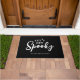 10飾月のポーチやパティオは、この面白いハロウィーンの黒と白の家族の名前のドー不気味マットで月をスプーク。カスタマイズモダン可能な黒の背景と白いトレンディーの手書き文字のスクリプトタイポグラフィで設計されたミニマル。その文字は中心に「不気味になろう」だ。家族パーソナライズされたの名前か自分のカスタム文字でクリックパーソナライズテンプレート・オプションと名前の入力。