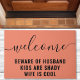 このユーモアあふれるドアマットで、ゲストを笑顔で迎えましょう! 遊び心のある「夫に気をつけて、子供は厄介、妻はクール」メッセージが、あなたの玄関先に個性と楽しさをプラスします。 この丈夫なコイアのドアマットは、屋内または屋外の使用に最適で、あなたの家の入り口にちょっとした笑いを加えます。