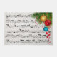 クリスマスオーナメント、緑の松、リボンと楽譜。