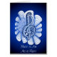 このユニークミュージカルデザインは私の芸術と音楽の愛を兼ね備えている。「Music is Art」と「Art is Music」という言葉を使った複雑に繊細で様式化されたミュージカルのトレブルクレフ、 音符記号を大きく織り込み、鮮やかな青のヴィネットスタイルの背景に黒く染み上がるエッジを表現。トレブルクレフ、 音符記号自体はペンとインクで手書きで描かれたデザインで、バスケット織り、ライン、カーブ、ホタテ、ドット、ロープ、渦巻きなど、多くの繰り返しパターン要素を含む。トレブルクレフ、 音符記号を取り囲むのは、ミュージカルのスタッフやステーブを表す波打ち線や、中央から流れ出る音楽の音来の波を表すことである。このデザインは、3D効果を得るために慎重にシェーディングされる。