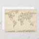 アンティークのスタイルの背景の上に、音符、クロシェ、クレフ、 音符記号、タイムシグナチャなどの音楽の記法から作られた世界の地図。