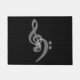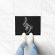 質感のあるシンプル黒と白の音楽をテーマにしたドアマット – 白いトレブルとベースのクレフ、 音符記号とテクスチャ付き黒の背景。音楽の愛。あなたの音楽ルーム/スタジオに最適。