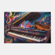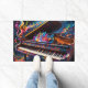 蓋を開けたカラフルのグランドピアノで、音符、色の渦巻き、そして上に色数々のの羽が飛び散る。このスタイルであなたの愛する人を歓迎 – Doormatに入る前カラフルに、あなたの足のための面白いピアノ鍵デザイン。