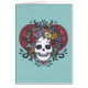 小さいswirliesとのハートの花の毛の花束が付いているかわいらしい女性庭師のスカル。 、黙した色苦しんでいる、ヴィンテージのヒッピーTシャツは、カード、ギフト発汗します。