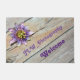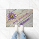 風化独身のした木の背景にあるパッションフローラやパッションフラワーの花は、エキゾチックな熱帯と素朴な魅力の美しいブレンドこの歓迎のドールマット。紫色の花は、風化した木製の板に置かれている。木製の板には、自然な木調とシルブリミグレーの老いた顔の両方がある。本当に歓迎するために名前でパーソナライズユニークする。この画像はJLW_PHOTOGRAPHYによるオリジナル花の写真である