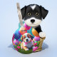 風船を持ったかわいい子犬 - スウィート ペット ネームタグ