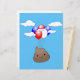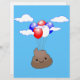 青い空に吹き飛んでいる出しがついたかわいいウンチ絵文字。かわいいスタイル漫画。