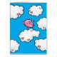 明るい青空のハートによって装飾される雲で踊る小さく白い翼を持つ愛らしいデジタル漫画のピンクのブタを特色にする黒の挨拶状のテンプレート。 それに大事な行事をするために内部のあなた自身のメッセージを加えて下さい!