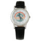 ティール(緑がかった色)のレトロなスタイルサークルの虹色の背景に青いシルエット飼育馬が乗っ動揺してていストライプる。一致するティール(緑がかった色)番号がクロック簡単を作読る。男性にも女性にも適している。