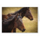 フォアグラウンドの2頭の馬のクローズアップされたカラー写真の画像がピントを合わせ、バックグラウンドの馬はピントがわずかに外れているだけで良い効果が得られる。両馬とも暗褐色で、背景に黄金の草地が広がっている。この写真に自然は感じ、田舎の国のイメージがあり、写真に目を引き込むのにすばらしい力で仕上がっている。この製品はカスタマイズ可能。好きなようにスタイルまたはオプションを選択する。