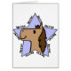 青い星の中央に可愛い茶色の馬頭が見え、星の外側に「馬」書という言葉が付いている。かわいい馬のデザインベビー、乳児、幼児。